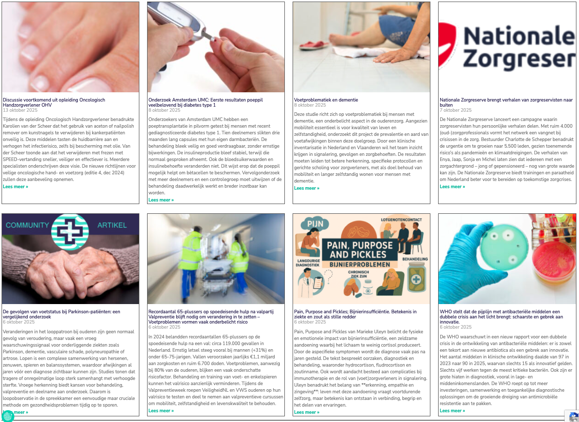 LiveActueel keert terug in 2026! Deze online talkshow, waarin we actuele en relevante zorgthema's voor onze doelgroep uitlichten, blijft een vast onderdeel van ons programma. Editie #8 van 22 september (thema: de rol van de (medisch) pedicure bij een ingroeiende nagel) was een groot succes: maar liefst 45% van de circa 400 deelnemers gaf een negen of tien! Op basis van de waardevolle feedback gaan we samen met de presentatoren bekijken welke aanvullende informatie we nog met de deelnemers kunnen delen. Bovendien leverden deelnemers enthousiaste suggesties aan voor toekomstige edities van LiveActueel en nieuwe nascholingen. We kijken ernaar uit om deze ideeën te vertalen naar inspirerende programma's en nascholingen met diepgang.